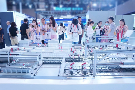 現(xiàn)場展出的重工行業(yè)智能工廠模型是基于華工科技為太原重工打造的標(biāo)桿案例,模型由板材下料產(chǎn)線、型材下料產(chǎn)線、焊接產(chǎn)線、涂裝產(chǎn)線、裝配產(chǎn)線五大核心生產(chǎn)線組成,展示了重工行業(yè)的生產(chǎn)工藝流程、產(chǎn)線布局、物流轉(zhuǎn)運規(guī)劃等內(nèi)容,通過該款模型,觀眾能夠直觀地體驗重工業(yè)智能工廠的科技魅力和無限潛力。