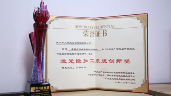 12月18日,第五屆“紅光獎“頒獎典禮在深圳順利舉行,獎項由中國激光行業創新貢獻獎組委會、激光制造網聯合業界權威專家及國內多家激光行業協會、激光學會、激光產業聯盟共同打造,華工激光車載攝像頭焊接智能裝備獲得“激光微加工系統創新獎”。