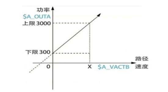 激光功率和進給路徑速度組成一個函數:使用FCTDEF可以定義三階多項式,形式為y=f(x)=a0+a1x+a2x2+a3x3;直線段多項式舉例:上限為1000、下限為-1000、縱坐標線段為a0=$AA_IM[x]且斜率為1的多項式定義:FCTDEF(1,-1000,1000,$AA_IM[x],1)。