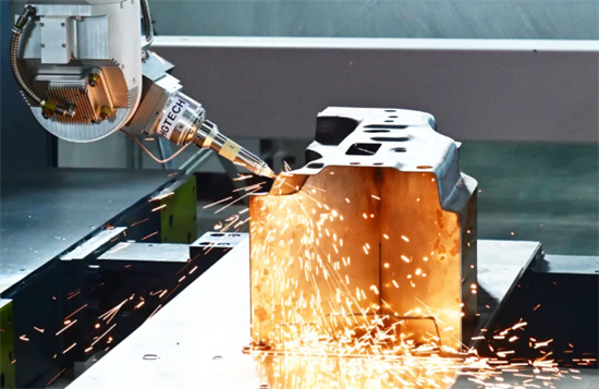 形象地說,這款智能裝備絕對是一個“三頭六臂”的機械舞者,五軸聯動的身軀具備超越人柔韌的稟賦。它們在橫(X軸)、縱(Y軸)、垂直(Z軸)三個方向上如滑步高手,在三維空間內閃電突進,還能在A軸和C軸雙旋轉軸似蛇形扭動,讓激光頭以刁鉆角度“貼面”切割。這意味著,在三維空間內,幾乎任何角度的切割都不在話下,而且精度高、速度快,絲滑游走,一次成型。