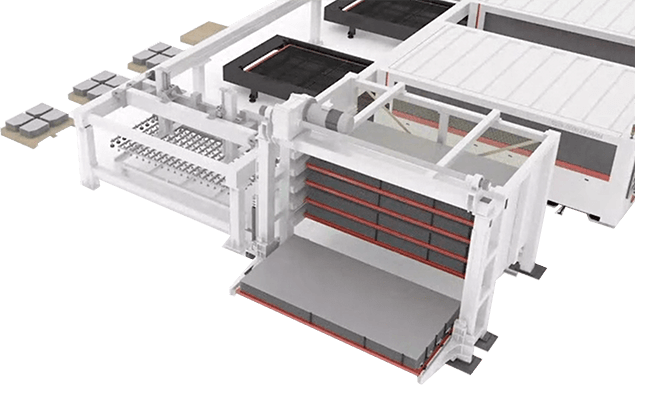實(shí)現(xiàn)物料立體存儲(chǔ),自動(dòng)出入庫(kù),配套數(shù)控沖床、激光切割機(jī)、數(shù)控折彎?rùn)C(jī)等鈑金設(shè)備