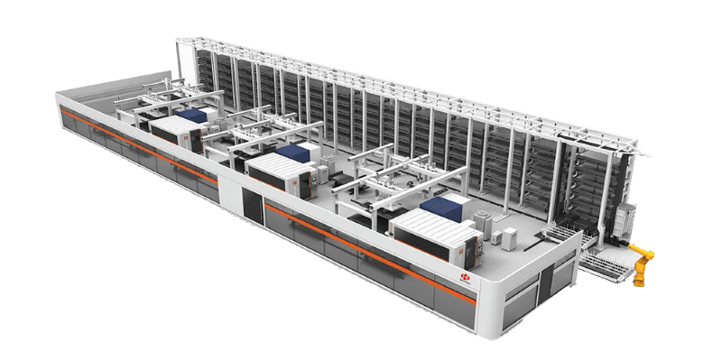 實現物料立體存儲,自動出入庫,配套數控沖床、激光切割機、數控折彎機等鈑金設備