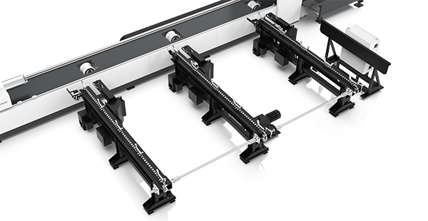 床身安裝有托舉裝置,當(dāng)需要托舉管材時相應(yīng)的托舉架會升起,當(dāng)X軸移動時靠近X軸的相應(yīng)托舉架會自動落下,以避免干涉。