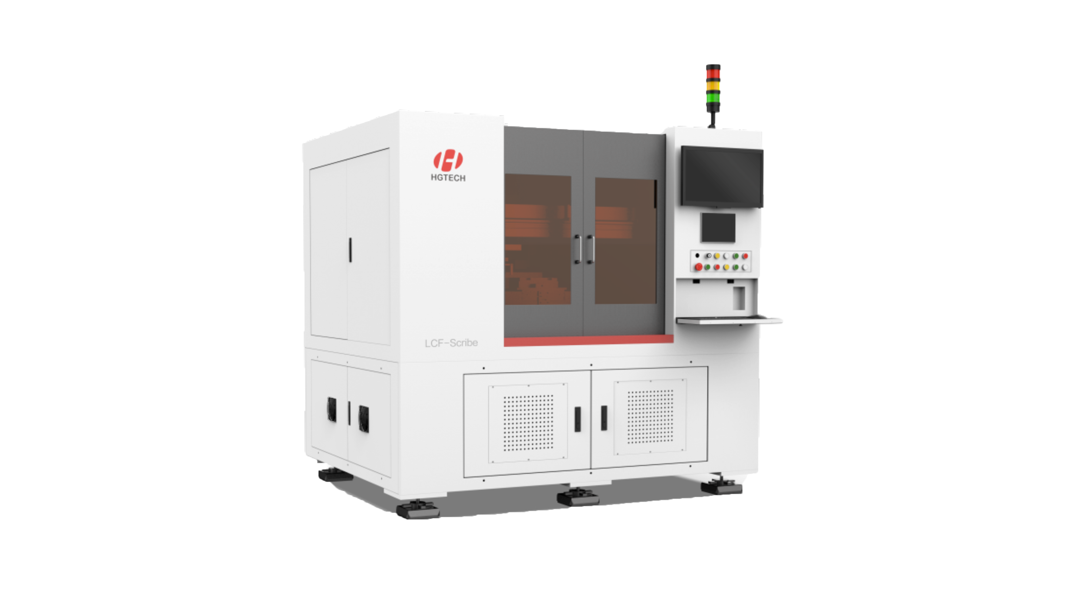 雙視覺系統,實現可視化快速對焦和高精度視覺定位 加工精度高達±25um 定制上下料專用搬運機構,實現無接觸加工 采用鋼結構+直線電機+大理石底座,穩定性好 安全環保,密封式設計規避粉塵危害 軟件自主開發,可對接客戶MES系統