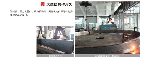 如斜楔、壓力機管件、盾構機構件、掘進機構件等零件的局部激光淬火強化。